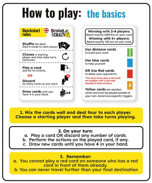 Stap in de auto en race naar het vakantiehuis met Driving Me Crazy!, een vlot kaartspel voor het hele gezin waarin je als eerste precies 1000 km probeert af te leggen met afstandskaarten—maar pas op voor tegenstanders die je onderweg proberen te vertragen!