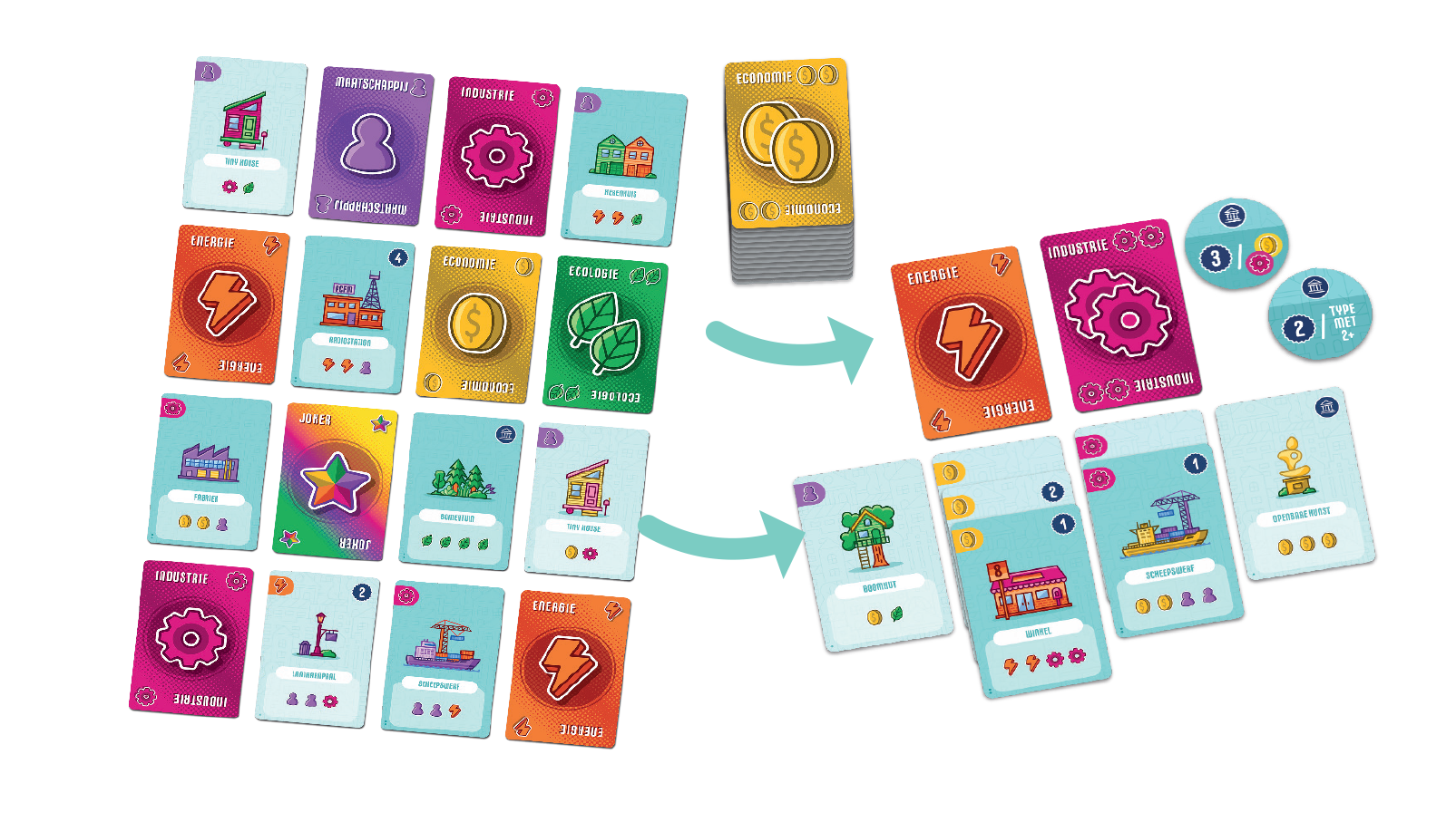 Point City hanteert hetzelfde eenvoudige spelconcept van het selecteren van kaarten en het bouwen van de beste combinaties. Het spel voegt vervolgens nieuwe lagen van grondstofbeheer én het bouwen van gebouwen toe aan de mix - waardoor het spel gemakkelijk te leren is, maar uitdagend blijft voor iedereen!